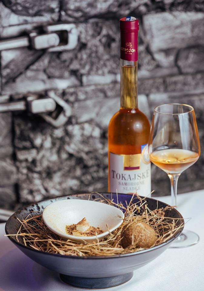 Čompe s skuto / fermentovaný syr a údená čokoláda + J&J Ostrožovič Samorodné sladké r.2008, Tokaj